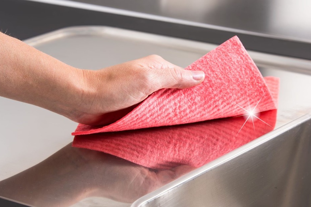 Για όλη την κουζίνα μπορείτε να χρησιμοποιήσετε ένα μόνο πανί: το πράσινο. Δηλαδή, αυτό που χρησιμοποιείται για τον πάγκο, την κουκούλα, το νεροχύτη… όλες τις επιφάνειες όπου χειρίζεστε τρόφιμα.